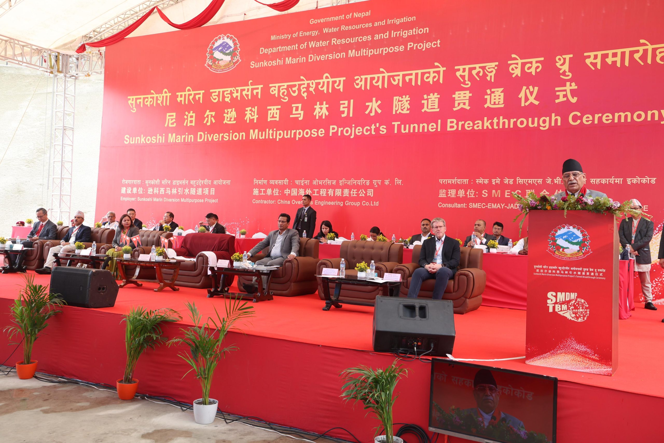 सुनकोशी मरिन डाईभर्सन बहुउद्देश्यीय आयोजना रूपान्तरणकारी राष्ट्रिय गौरवको आयोजना भएको उल्लेख गर्दै प्रधानमन्त्री प्रचण्डले आयोजनाहरू सम्पन्न हुँदा उत्पादकत्व अभिवृद्धि र समृद्धिको लक्ष्यमा महत्त्वपूर्ण योगदान पुग्ने विश्वास व्यक्त गरे । उनले भने, “सुरूङमार्गको ब्रेक-थ्रू सम्पन्न हुँदा हामी सबैमा नयाँ ऊर्जा र प्रेरणा मिलेको छ । ठूला पूर्वाधार निर्माणमा उत्साह थपेको छ ।”