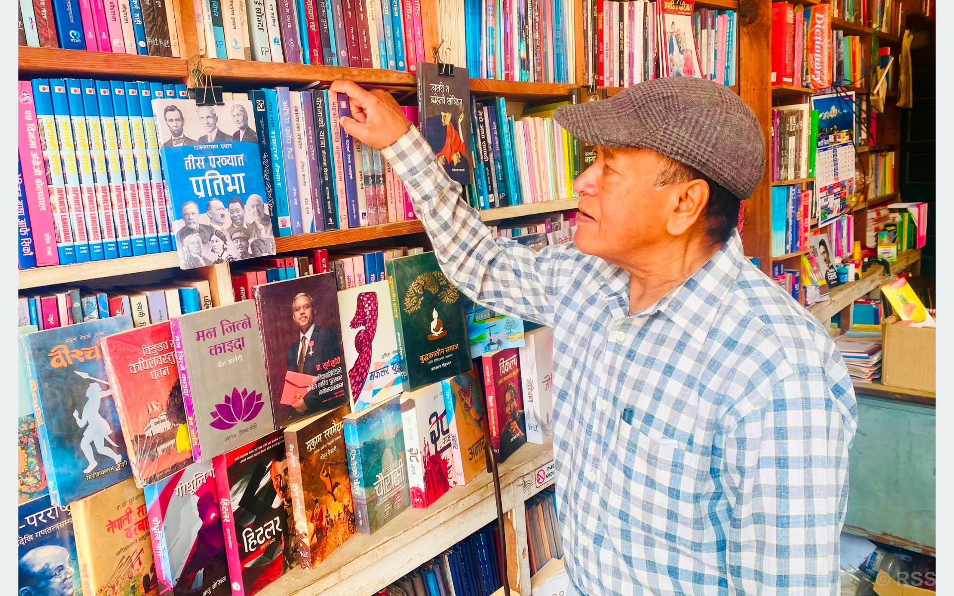 बागलुङ । तपाईँलाई आज हामी कम्तिमा ६० वर्ष पुरानो किताब दोकानमा लैजाँदै छौँ । त्यो बागलुङ बजारको लालीगुराँसचोकमा विसं २०२१ मा खुलेको लालचन्द्र–राजेशचन्द्र राजभण्डारी किताब दोकान हो । पुस्तक, पत्रपत्रिका तथा स्टेशननरी बेचेर स्थानीयस्तरमा छ दशकदेखि ज्ञान बाँड्दै आएका लालचन्द्र राजभण्डारी दोकानको कुनापट्टि एउटा कुर्सी राखेर टुसुक्क बसिरहनुभएको छ । त्यहीबेला हामी पनि ८२ वर्षीय राजभण्डारीसँग भलाकुसारी गर्न टुप्लुक्क पुग्यौ । राजभण्डारीले छ दशकसम्म किताब बेचेर हासिल गरेको अनुभव जान्नु थियो हामीलाई ।