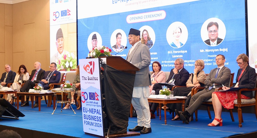 नेपाल–युरोपेली सङ्घबीच कूटनीतिक सम्बन्ध स्थापना भएको ५० औँ वार्षिकोत्सवका अवसरमा आज आयोजित ‘नेपाल–इयु व्यापार मञ्च’को उद्घाटन गर्दै प्रधानमन्त्री प्रचण्डले नेपाल सरकार व्यवसायका लागि खुलापन सुनिश्चित गर्न प्रतिबद्ध रहेको बताए ।