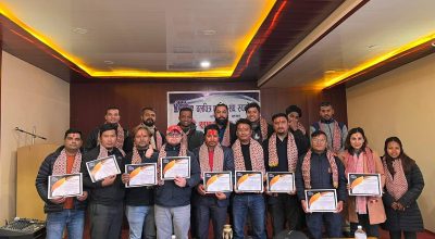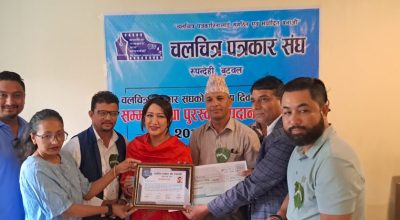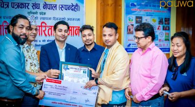 बुटवल । चलचित्र पत्रकार संघ नेपाल, शाखा रुपन्देहीले यही जेठ ७ गते आफ्नो ७ औँ वार्षिकोत्सवको अवसर पारेर २ जना चलचित्र पत्रकारहरूलाई सम्मान तथा पुरस्कार प्रदान गर्ने भएको छ । अध्यक्ष मोहन न्यौपानेको अध्यक्षतामा गत सोमबार बसेको सङ्घको कार्यसमिति बैठकले उक्त निर्णय गरेको हो ।