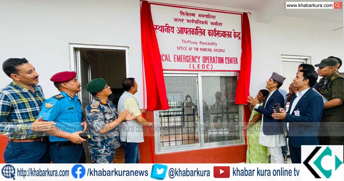 तिलोत्तमा । रुपन्देहीको तिलोत्तमा नगरपालिकामा तिलोत्तमा सूचना केन्द्र र स्थानीय आपतकालीन कार्य संचालन केन्द्र स्थापना गरिएको छ । नगरपालिकाको सही सूचना सहजै उपलब्ध गराउने उद्देश्यले सूचना केन्द्रको स्थापना गरिएको हो भने एक्कासी आइपर्ने विपद् न्यूनीकरणको कार्यमा तत्पर रहन आपतकालीन संचालन कार्य केन्द्र निर्माण गरिरएको हो । दुवै केन्द्रको सोमबार एक कार्यक्रमका बीच नगर प्रमुख रामकृष्ण खाँणले उद्घाटन गरेका छन् ।