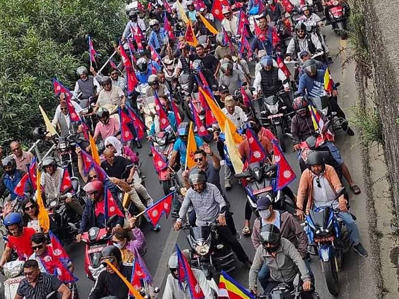 बबरमहलमा जम्मा भई पार्टीले माइतीघर, थापाथली, त्रिपुरेश्वर, सुन्धारा, न्युरोड, जमल, महेन्द्र सालिक हुँदै नारायणहिटीसम्म मोटरसाइकल ऱ्याली गरी प्रदर्शन गरेका हुन्।