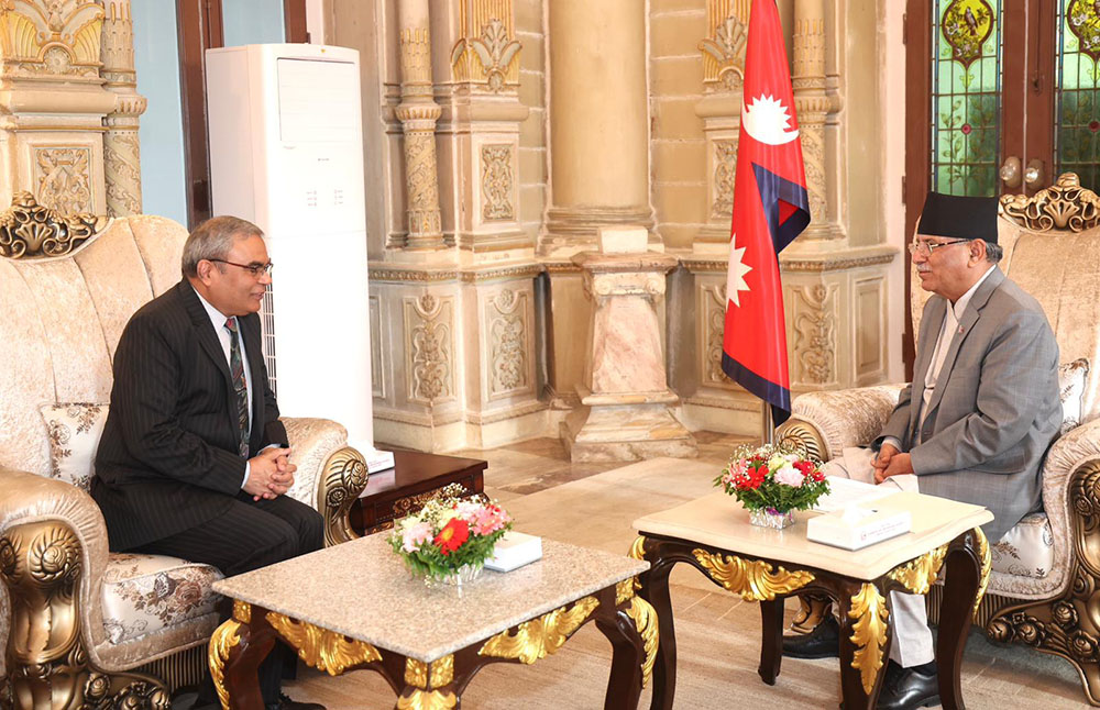 काठमाडौं। प्रधानमन्त्री पुष्पकमल दाहाल ‘प्रचण्ड’ सँग बहुपक्षीय प्राविधिक एवं आर्थिक सहयोगका लागि बङ्गालको खाडीको प्रयास (बिम्स्टेक) का महासचिव इन्द्रमणी पाण्डेले शिष्टाचार भेट गरेका छन् ।