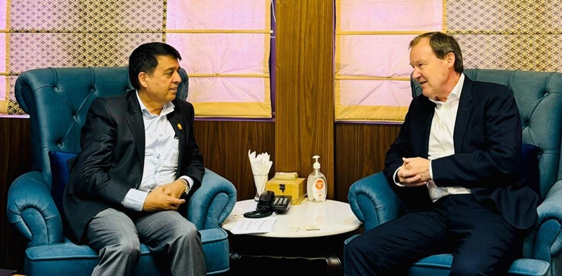 काठमाडौं । नेपाल उद्योग वाणिज्य महासङ्घका अध्यक्ष चन्द्रप्रसाद ढकालले नेपालमा ब्रिटिस लगानी बढाउनका लागि सहजीकरण गरिदिन अनुरोध गरेका छन्। नेपालका लागि बेलायती राजदूत रोब फेनसँगको भेटका अवसरमा उनले सो आग्रह गरेको महासङ्घद्वारा जारी विज्ञप्तिमा जनाइएको छ ।