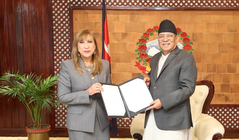 नेपालस्थित संयुक्त राष्ट्रसङ्घका आवासीय प्रतिनिधि हाना सिङ्गरले प्रधानमन्त्री प्रचण्डलाई भेट गरी आज महासचिव गुटेरेसको निमन्त्रणा पत्र हस्तान्तरण गरिन ।