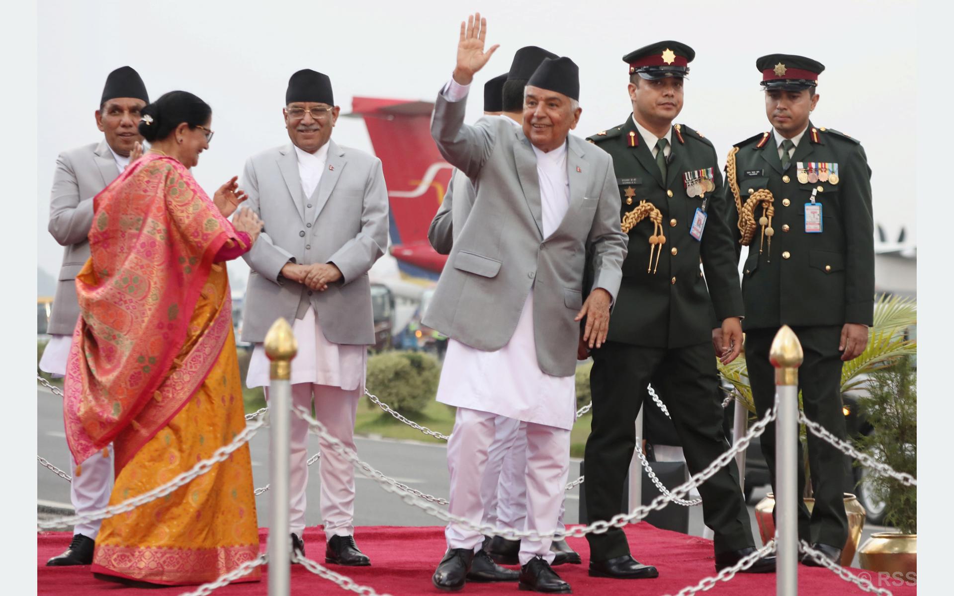राष्ट्रपतिको बिदाइका लागि विमानस्थलमा राष्ट्रियसभा अध्यक्ष, उपप्रधानमन्त्री, मन्त्रीगण, संवैधानिक निकायका प्रमुख, सुरक्षा निकायका प्रमुख, नेपाल सरकारका उच्च पदस्थ अधिकारी, यहाँस्थित कूटनीतिक नियोगका प्रमुुख एवं प्रतिनिधि उपस्थित थिए ।