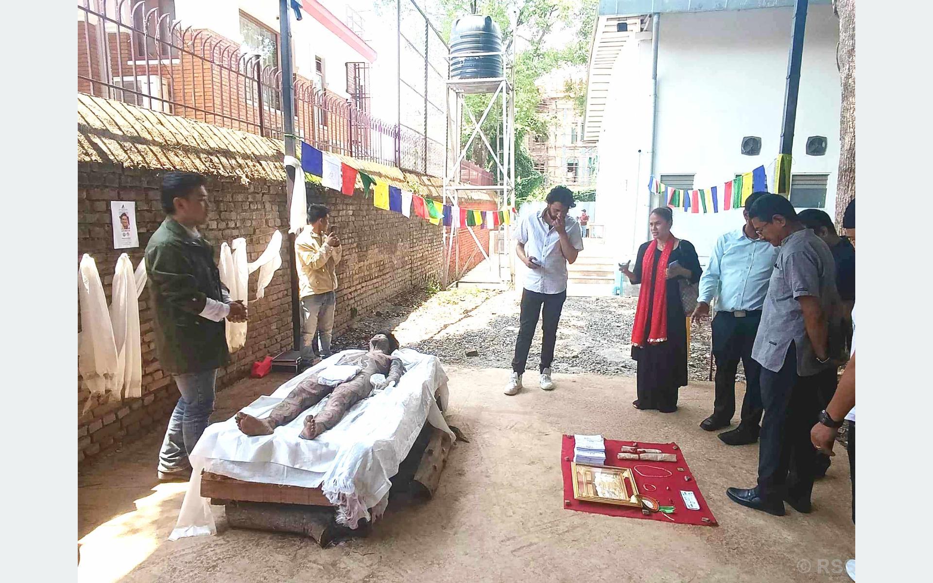 काठमाडौं । चितामा लास छ । छेवैमा अगरबत्तीको मन्द वासना आइरहेको छ, नजिकै रातो कपडामा गरगहना, पुरस्कार, धन, सम्पत्ति, कागजात र हवाई टिकट देखिन्छ । वरिपरि खादा र ध्वजापताका, केहीपर लास जलाउन चाहिने काठका मुढा । मृत व्यक्तिको शरीरभरि ट्याटु छ । घोटिएका पैताला, घाँटी र कम्मरमा चोट छन् ।