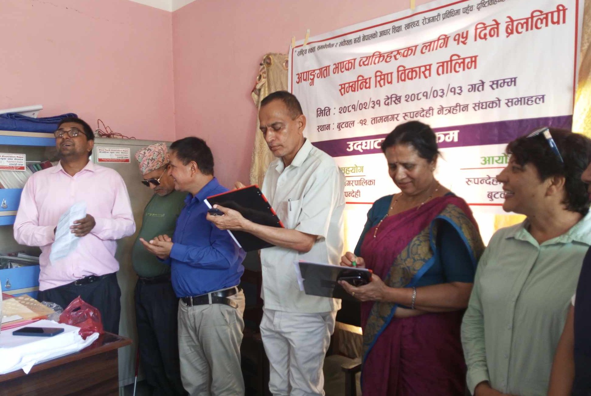 बुटवलमा दृष्टीबिहिनका लागि १५ दिने ब्रेल लिपी सिप विकास तालिम