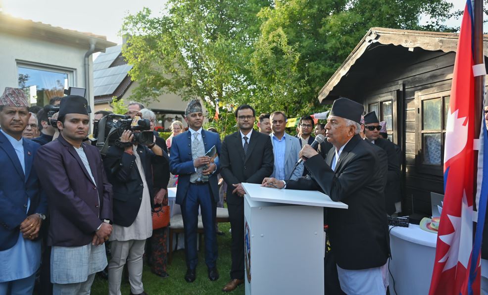 काठमाडौं । जर्मनीको भ्रमणमा रहनुभएका राष्ट्रपति रामचन्द्र पौडेलको सम्मानमा जर्मनीको वर्लिनस्थित नेपाली राजदूतावासले आाइतबार स्वागत समारोह आयोजना गरेको छ ।