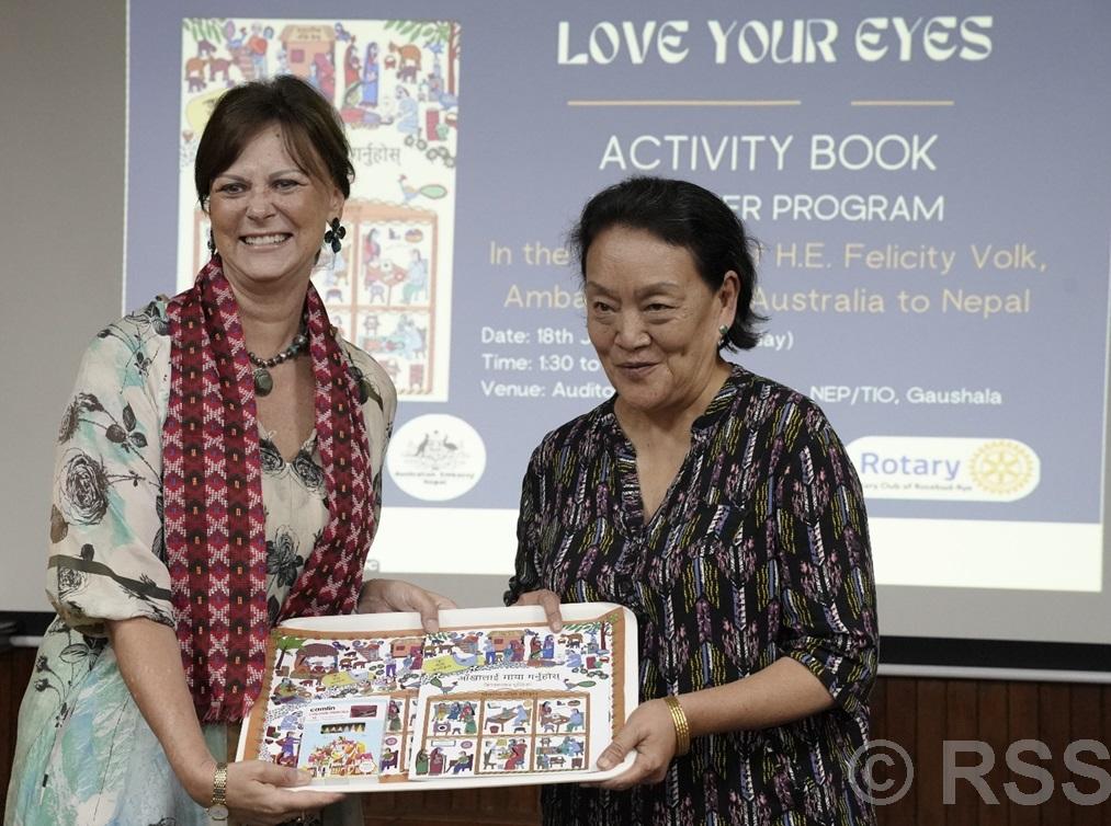 काठमाडौं । नेपालका लागि अष्ट्रेलियाका राजदूत फेलिसिटी भोल्क र तिलगङ्गा आँखा प्रतिष्ठानकी प्रमुख कार्यकारी अधिकृत डा. रिता गुरुङले ‘आँखालाई माया गर्नुहोस्’ नामक बालबालिका लक्ष्यित आँखा स्वास्थ्य प्रवर्र्धन गर्ने चेतनामूलक पुस्तक आज यहाँ आयोजित एक कार्यक्रममा संयुक्त रूपमा लोकार्पण गरेका छन् ।