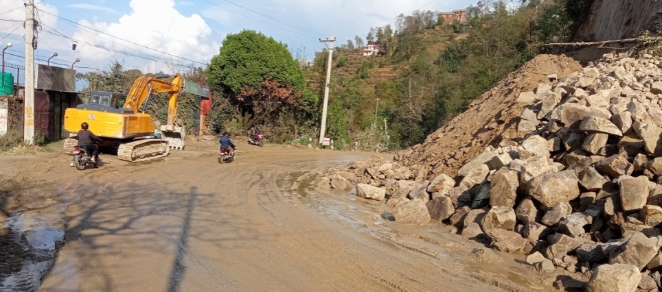 चार किलोमिटर लम्बाइको सो सडकखण्डको ३२ किलो भन्ने स्थानमा माथिबाट लेदो बग्दा सडक अवरुद्ध हुँदा आवागमनमा कठिनाइ भएको हो । लेदो पन्छाएर एकतर्फी रुपमा सवारी सञ्चालनमा ल्याइएको प्रमुख जिल्ला अधिकारी सूर्य सेढाइँले जानकारी दिए। समयमै निर्माण सम्पन्न नहुँदा यस राजमार्ग भएर गुड्ने सवारीका यात्रुले दुई वर्षदेखि निकै सास्ती खेप्दै आउनुपरेको छ । निर्माणाधीन सडकखण्डको समयसीमा २०८० चैत १९ गते सकिएपछि केही महिना समय थपेर पुनः निर्माणको काम थालिएको हो ।
