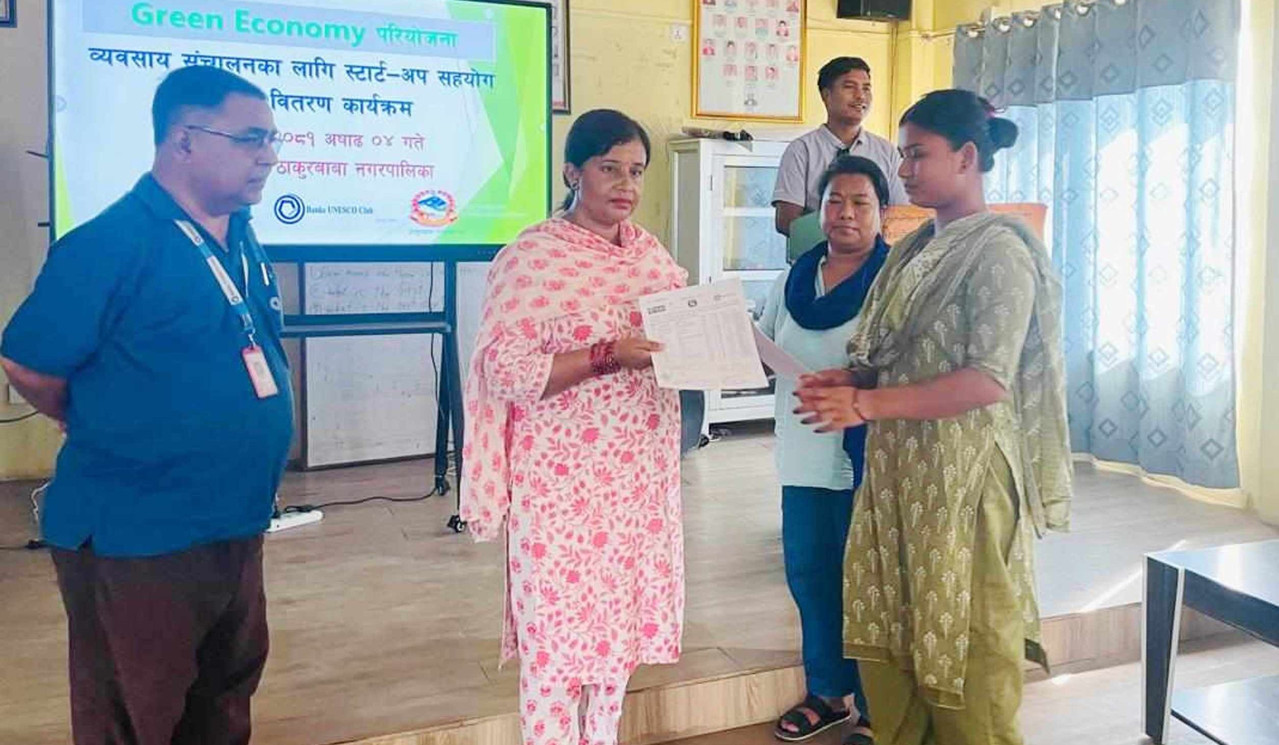 बर्दिया । बाँके युनेस्को क्लबले बर्दियाको ठाकुरबाबा र राजापुर नगरपालिकाका अति विपन्न युवा महिलाहरुलाई हरित उद्यम सञ्चालन गरेर वातावरण संरक्षणमा योगदान दिन स्टार्टअप सहयोग बितरण गरेको छ ।