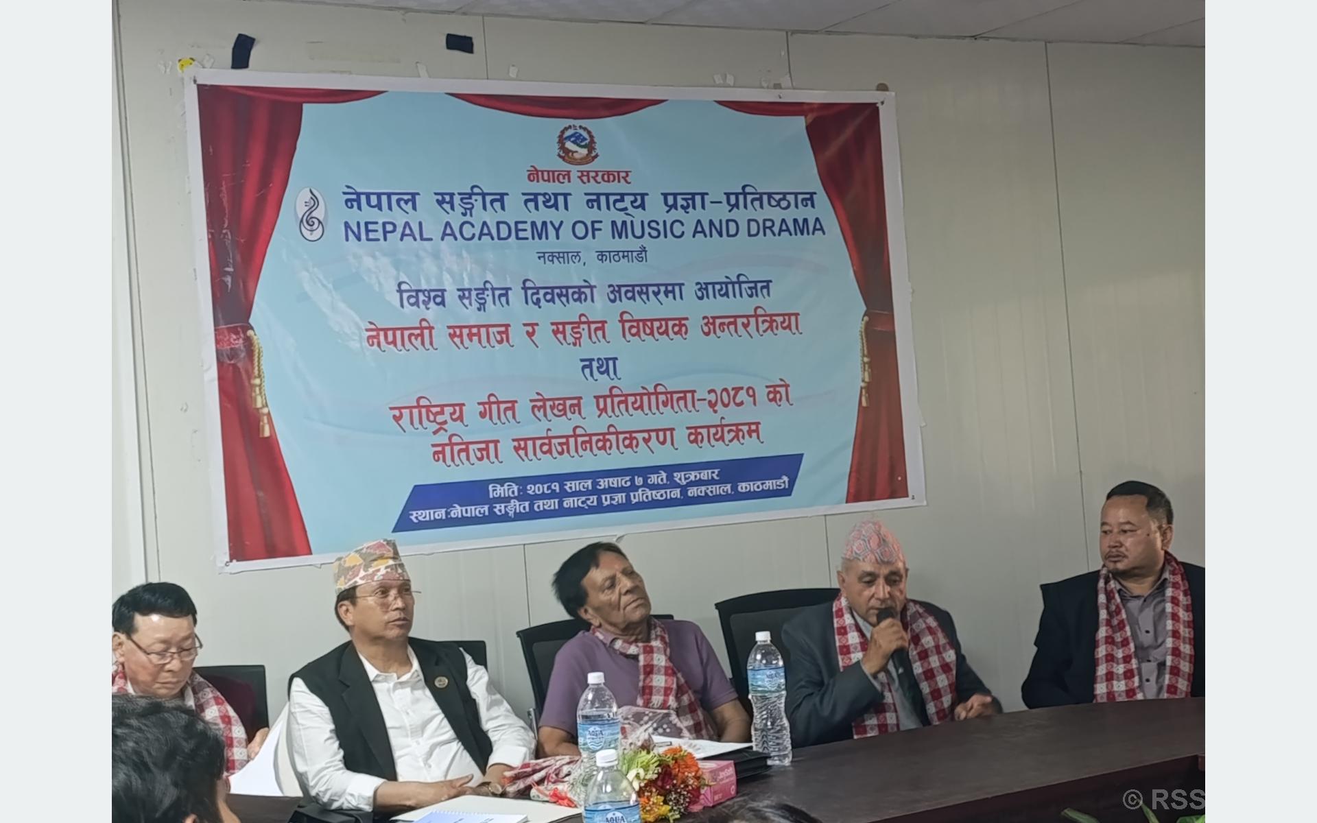 विश्व सङ्गीत दिवसका अवसरमा आज नेपाल सङ्गीत तथा नाट्य प्रज्ञा–प्रतिष्ठानको आयोजनामा यहाँ आयोजित ‘नेपाली समाज र सङ्गीत’ विषयक अन्तरक्रियामा उनीहरुले सङ्गीतलाई छुटाएर मानव जीवन पूर्ण हुन नसक्ने तर्क गरे । सन् १९८१ जुन २१ मा फ्रान्सबाट सङ्गीत दिवस मनाउन थालिएको हो । यो दिवस नेपालमा पनि विभिन्न कार्यक्रम गरी मनाइएको छ ।