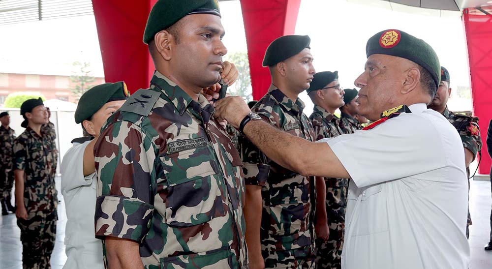 काठमाडौँ । प्रधान सेनापति प्रभुराम शर्माले सैनिक प्राड सेवा, प्राविधिक सेवा (स्वास्थ्य तथा इन्जिनियरिङ्ग समूह), हवाई सेवा तथा विविध सेवामा रिक्त रहेका अधिकृत पदहरुमा खुल्ला तथा समावेशी प्रतिस्पर्धाबाट छनौट भएका अधिकृतहरुलाई दर्ज्यानी चिन्ह प्रदान गरेका छन् ।