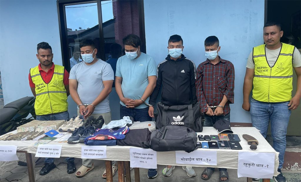 भक्तपुरको ददिकोटका डिल्लीराज राउतको घरमा प्रहरी हवल्दार कृष्ण बहादुर बोहरासहित ५ जनाले सीआईबीको टोलीभन्दै प्रवेश गरेर दराजमा रहेको २ करोड रुपैयाँ लुटेर भागेको अभियागमा ४ जनालाई प्रहरीले पक्राउ गरेको हो ।