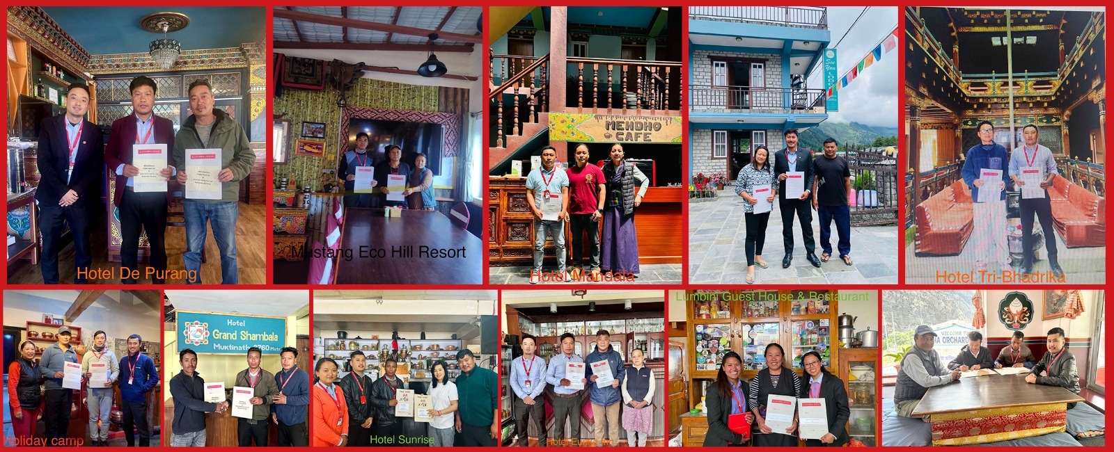 M Hotel De Purang Muktinath, Eurika Inn Muktinath, Hotel Grand Sambala , Muktinath Hotel Sunrise, Jomsom Airport. Hotel Mandala, Lomanthang, Hotel Trivatika, Lomanthang, Eco Hill Resort, Tukuche, Holiday Camp, Hotel Tangsra Kowang , Lumbini and Restaurant, Tsarang, See You Lodge, and Restaurant Lete and Marpha Orchard Hote Marpha.