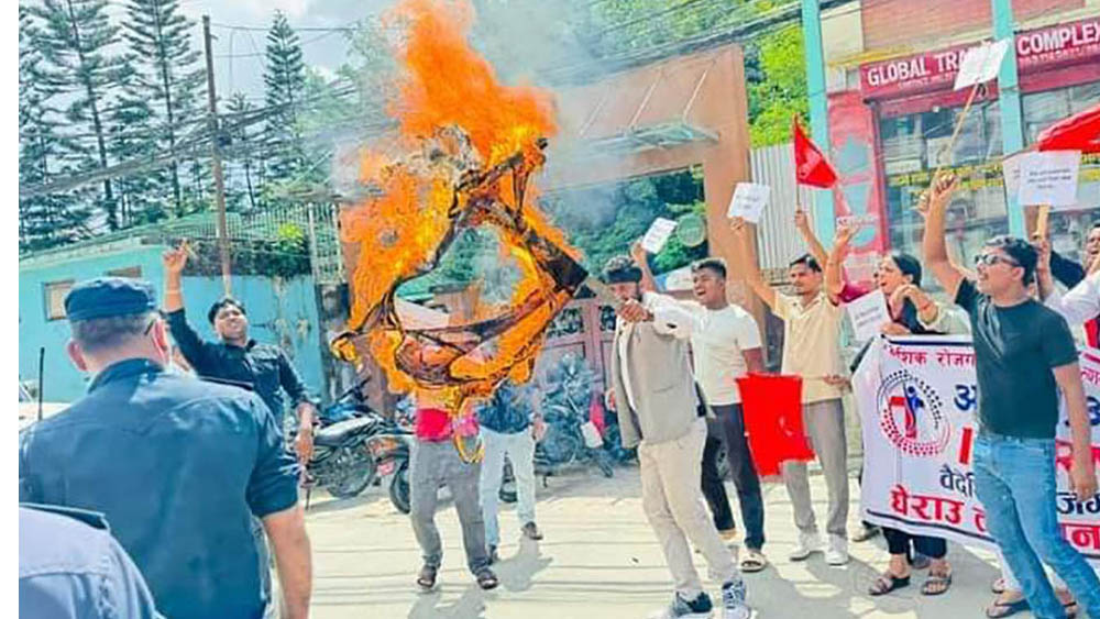श्रममन्त्रीको पुतला दहन