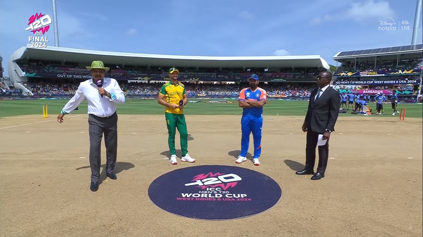 बरबाडोसमा हुन लागेको यस फाइनलमा भारतका कप्तान रोहित शर्माले टस जितेर पहिला ब्याटिंग गर्ने निर्णय गरेका हुन् । योसँगै दक्षिण अफ्रिकाले पहिला बलिङ गर्ने भएको छ ।
