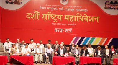 काठमाडौँ । नेकपा (एकीकृत समाजवादी) को दशौँ राष्ट्रिय महाधिवेशन अन्तर्गत आजबाट बन्द सत्र सुरु हुँदैछ ।