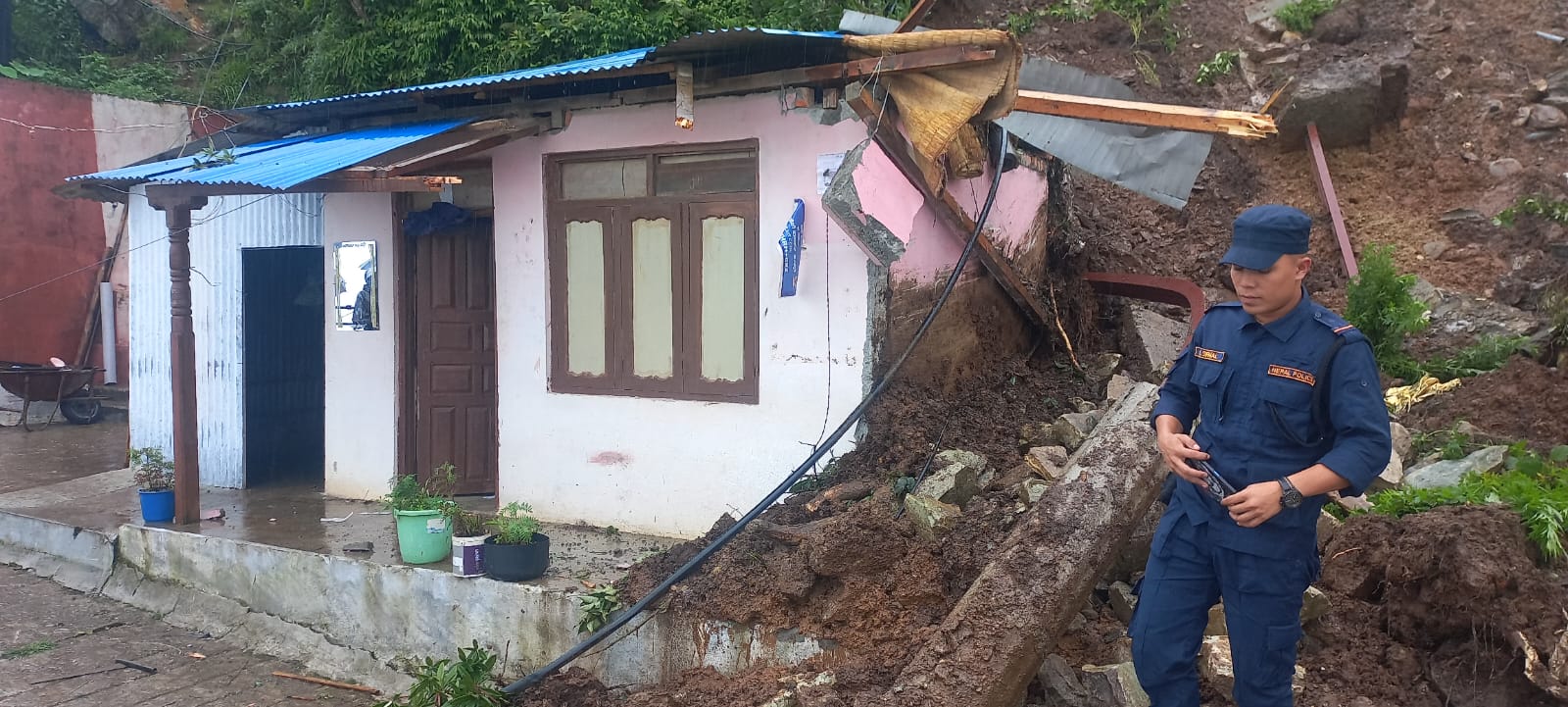 पहिरोले प्रहरी चौकीमा क्षति