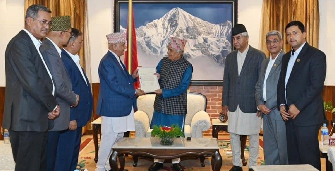 ओलीले एमाले र कांग्रेसका १६६ सांसदको हस्ताक्षरसहित शुक्रबार दाबी पेस गरेका थिए । ओली नेपाली कांग्रेसका सभापति शेरबहादुर देउवासहित शीतलनिवास पुगेर दाबी पेस गरेका थिए ।