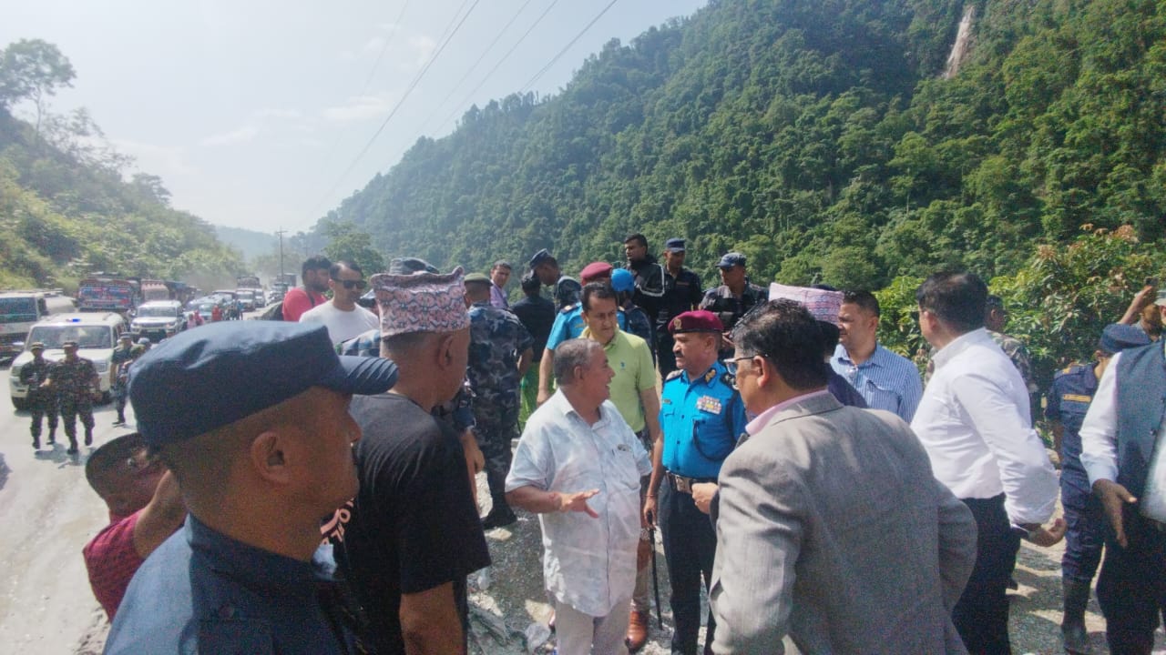 स्थलगत अवलोकनमा गृहसचिव अर्याल, महानिरीक्षक कुँवरज्यू लगायत सुरक्षा निकायका प्रमुखहरू, राष्ट्रिय विपद् न्यूनिकरण तथा व्यवस्थापन प्राधिकरणका पदाधिकारीज्यूहरू, विपद् तथा द्वन्द्व व्यवस्थापन महाशाखाका सह-सचिवज्यू तथा वरिष्ठ प्रहरी अधिकृतज्यूहरूको उपस्थित रहेका थिए ।