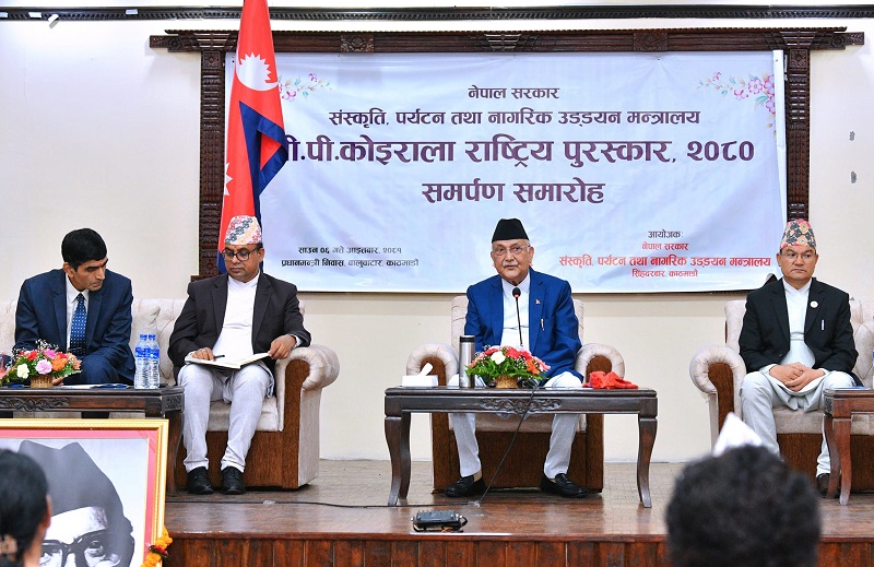 काठमाडौँ । प्रधानमन्त्री केपी शर्मा ओलीले बिपी कोइराला राष्ट्रिय पुरस्कार २०८० बाट पुरस्कृत हुने चार जना पुरस्कार प्रदान गरेका छन् ।