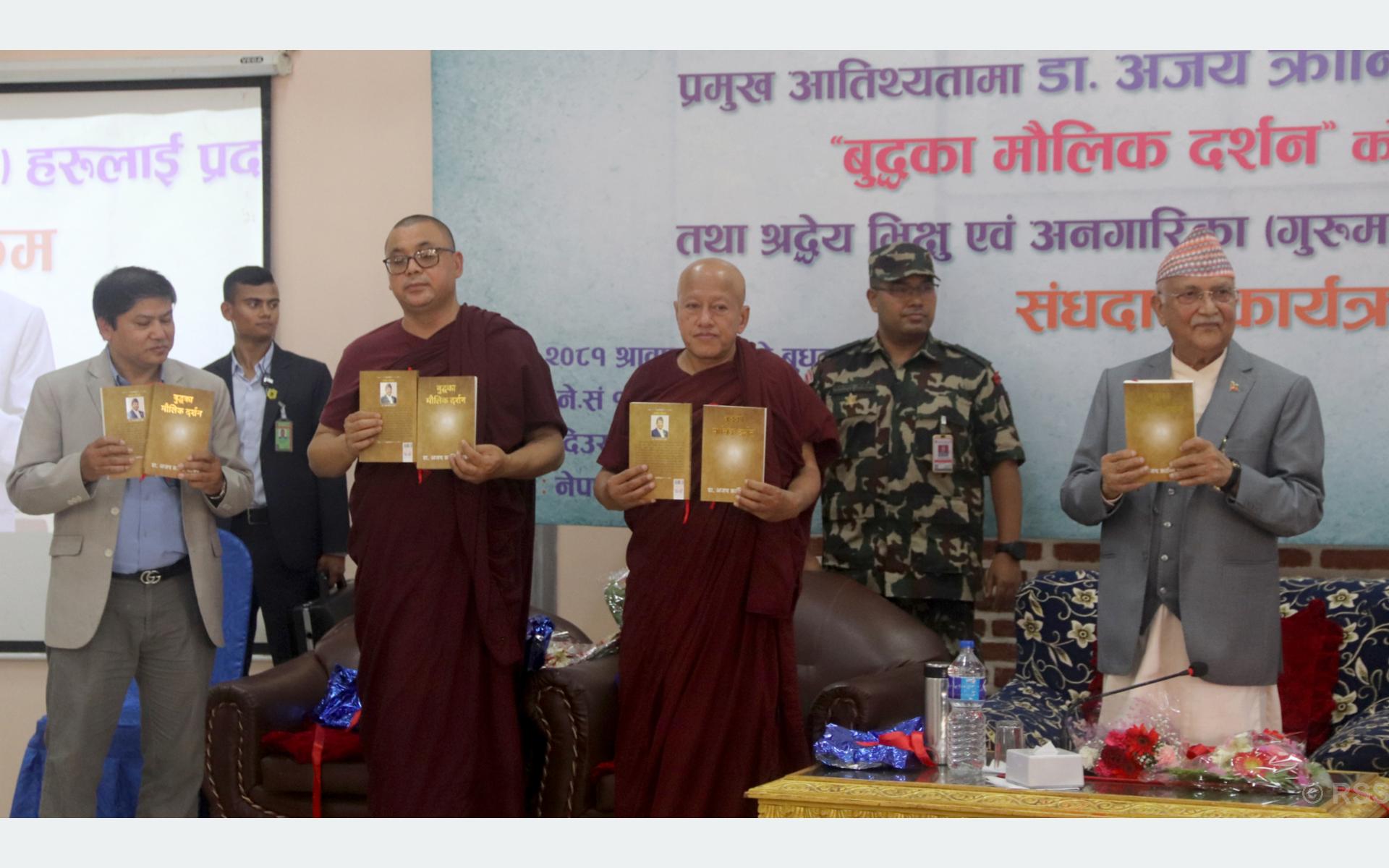 नेपाल मण्डल लिटरेचर कल्चर टष्टद्वारा आज आयोजित बौद्ध विद्वान डा अजयक्रान्ति शाक्यद्वारा लिखित ‘बुद्धका मौलिक दर्शन’ पुस्तक विमोचन कार्यक्रमलाई सम्बोधन प्रधानमन्त्री ओलीले आफू आज कार्यक्रममा आउँदा प्रशन्न चिन्तन लिएर आउने सोचमा रहे पनि अकल्पनीय रुपमा आजै भएको सौर्य एयरको विमान दुर्घटनास्थलमा पुगेर आउनुपरेकाले भारी मन लिएर आउन विवश भएको सुनाए ।
