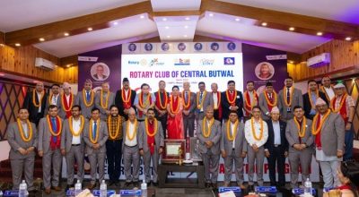 बुटवल । विश्वकै एक मात्र पृथक रोटरीको रुपमा स्थापित रोटरी क्लब अफ सेन्ट्रल, बुटवलको नवौं पदस्थापन सम्पन्न भएको छ । रोटरी वर्ष २०२४/२५ का अध्यक्ष दिनेशराज रेग्मीको टिमले एक समारोहकाबीच पदस्थापन सम्पन्न गरेको हो ।