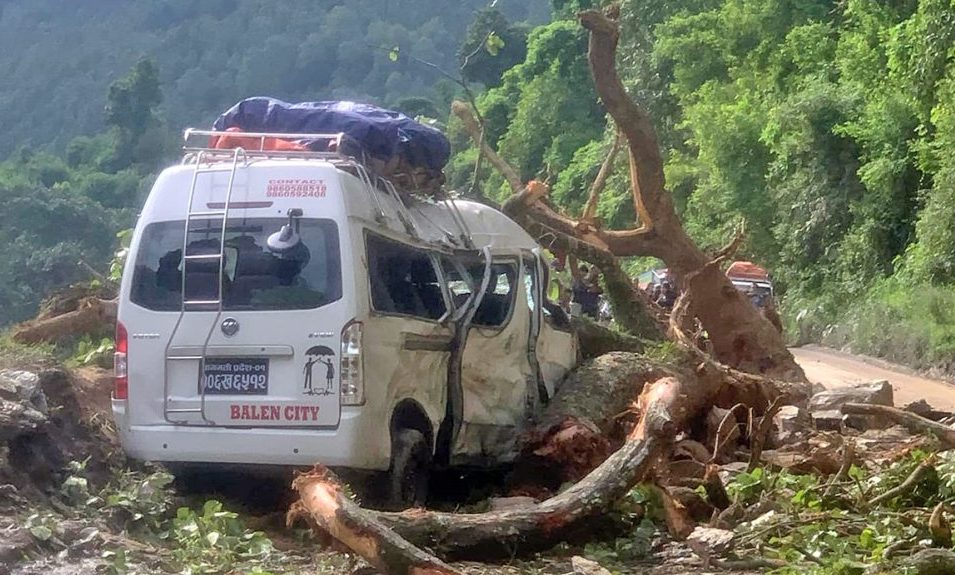 काठमाडौं आउँदै गरेको माइक्रोबसमाथि रुख ढल्यो, ७ जना घाइते