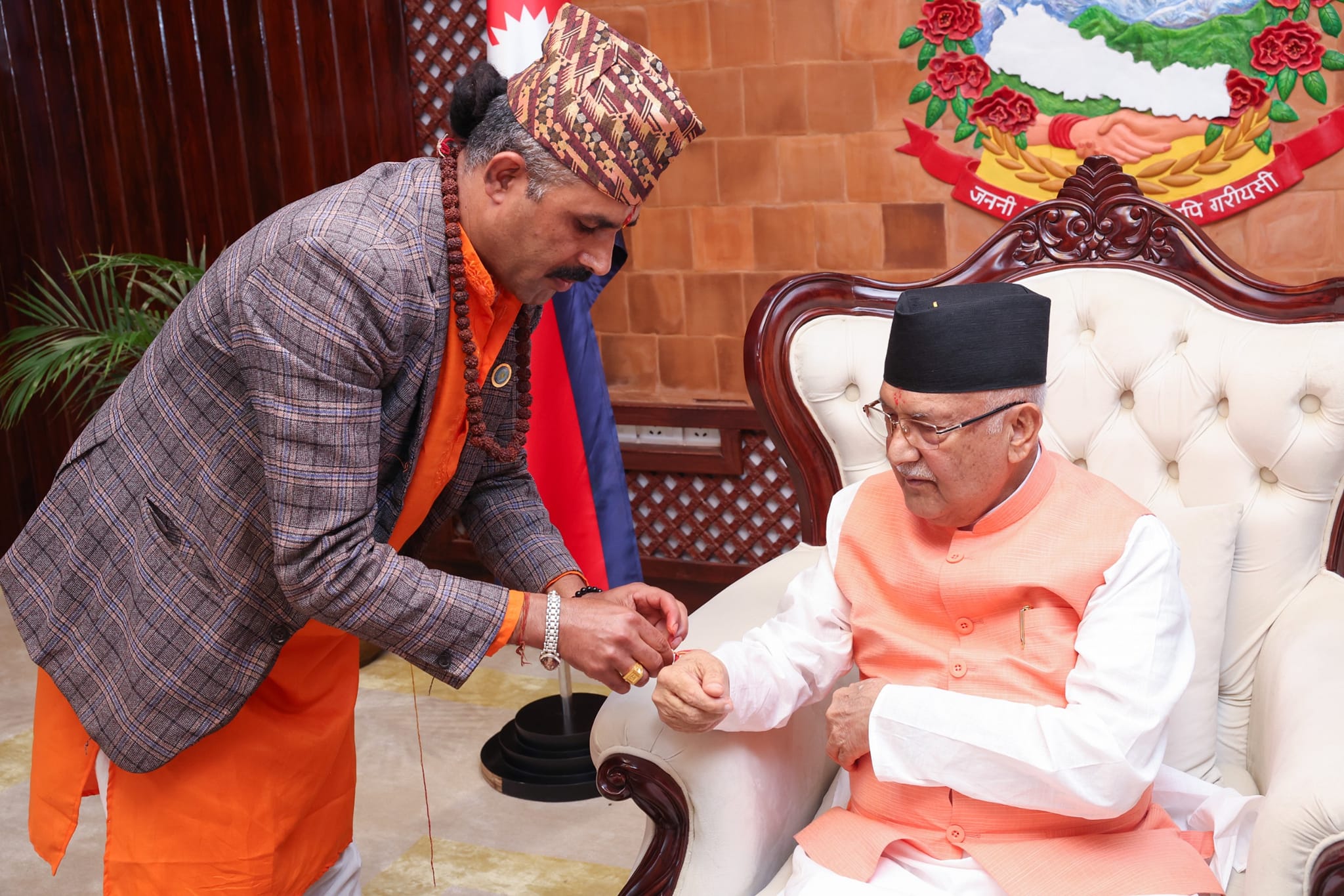 प्रधानमन्त्री ओलीद्वारा जनैपूर्णिमाको शुभकामनासहित रक्षाबन्धन ग्रहण