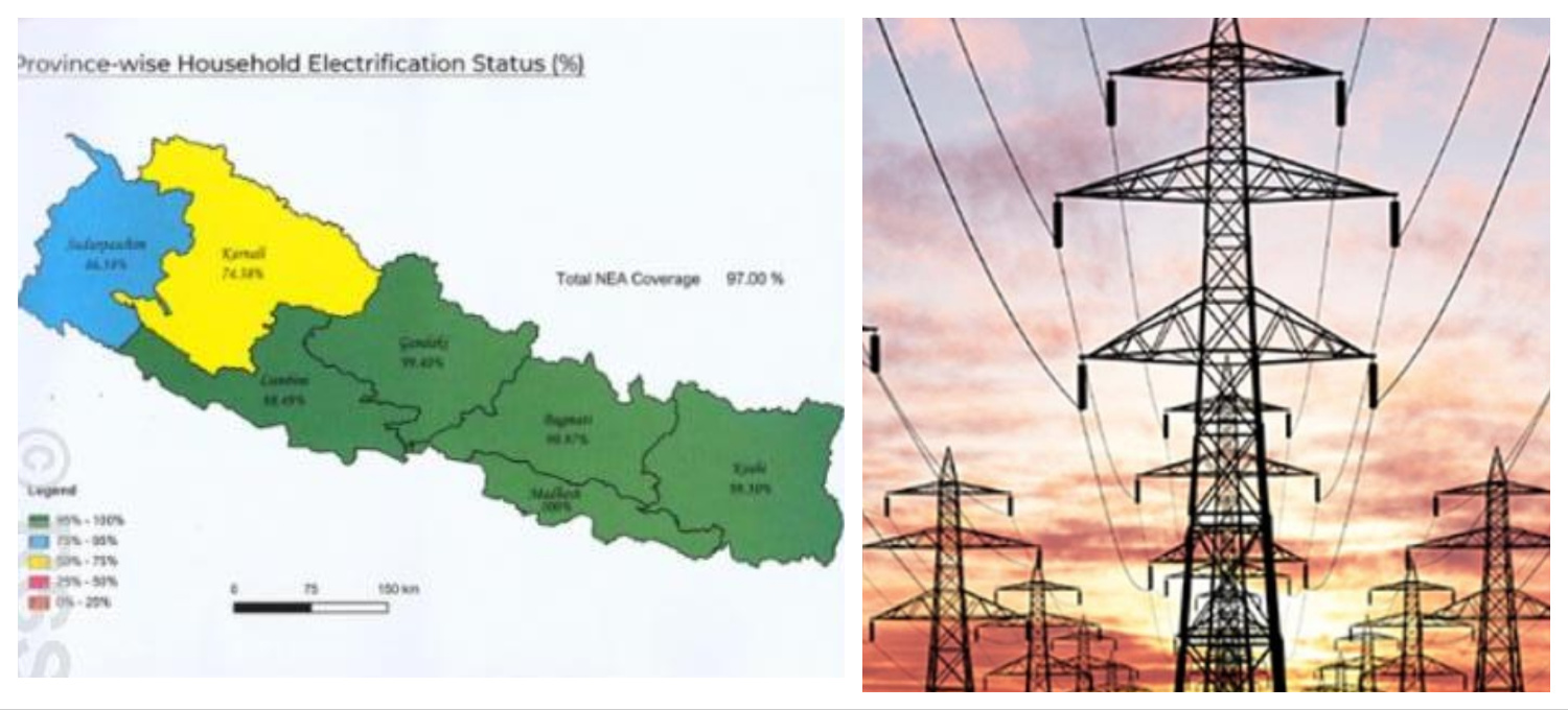 नेपाल विद्युत् प्राधिकरणले मुलुकभरिका स्थानीय तहका गाउँपालिका र नगरपालिकाका वडासम्मको विस्तृत अध्ययनगरी तयार पारेको विद्युतीकरण तथ्याङ्क २०८१ अनुसार, कूल जनसङ्ख्याको ९९ प्रतिशतमा विद्युत् सेवा पुगेको छ । विद्युत्का ग्राहक सङ्ख्या सामुदायिकसहित ५९ लाख ३५ हजार पुगेको छ । विद्युत्को पहुँच पुगेको जनसङ्ख्यामध्ये ९७ प्रतिशत राष्ट्रिय ग्रिडबाट र दुई प्रतिशतले ग्रिडभन्दा बाहिरबाट बिजुली उपभोग गरिरहेका छन् ।