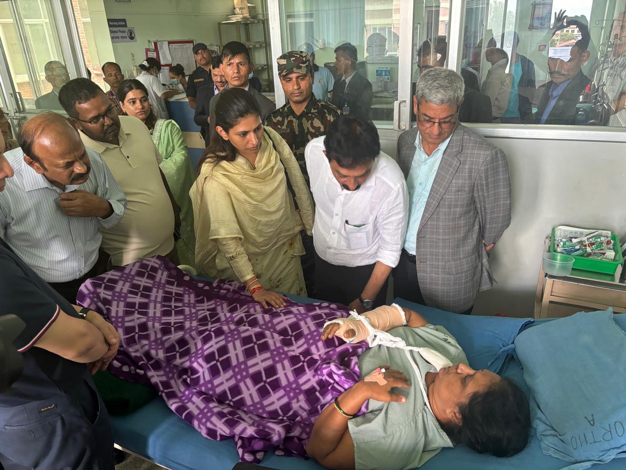 तनहुँ बस दुर्घटना : गृहमन्त्री लेखक र भारतीय राज्यमन्त्री खड्से शिक्षण अस्पतालमा