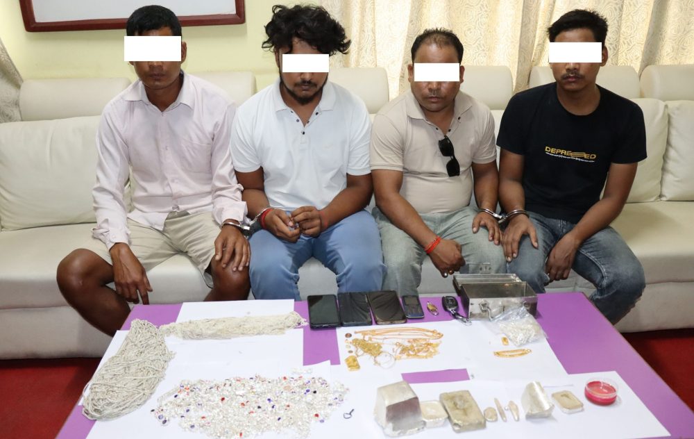 नेपालगन्ज । बाँके प्रहरीले सुनचाँदीको अबैध कारोबारको आरोपमा सुनचाँदी सहित पक्राउ परेका ४ जनानलाई पक्राउ गरेको झण्डै २४ घण्टापछि सार्वजनिक गरेको छ । सुनचाँदी बरामद र अबैध कारोबार गर्नेहरु पक्राउ परेको घटना प्रहरी स्रोतहरुबाट छताछुल्ल भएपछि प्रहरीले बरामदी सुन र पक्राउ परेका ब्यक्तिहरुलाई सार्वजनिक गरेको हो ।