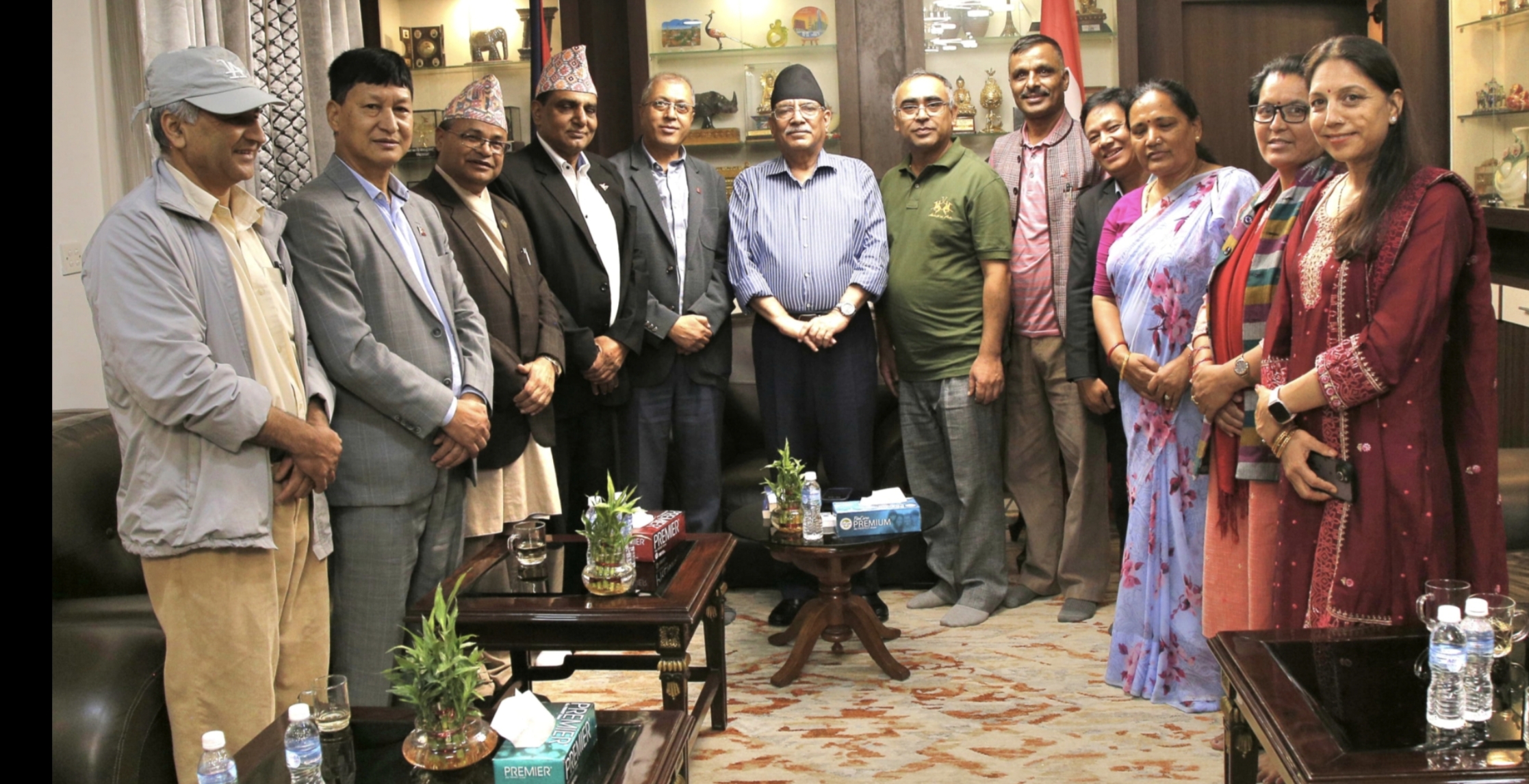 आफूहरुले प्रधानमन्त्री केपी शर्मा ओलीसँग भेट गरेर भ्याकेटमा जान सुझाव दिएको र नेपाली कांग्रेसका सभापति शेरबहादुर देउवासँग भेट गरिसकेको जानकारी गराउँदै प्रतिनिधिमण्डलका सदस्यहरुले प्रमुख प्रतिपक्ष दलका नेता र पार्टी अध्यक्षको रुपमा प्रचण्डलाई भेट्न आएको बताएका थिए ।