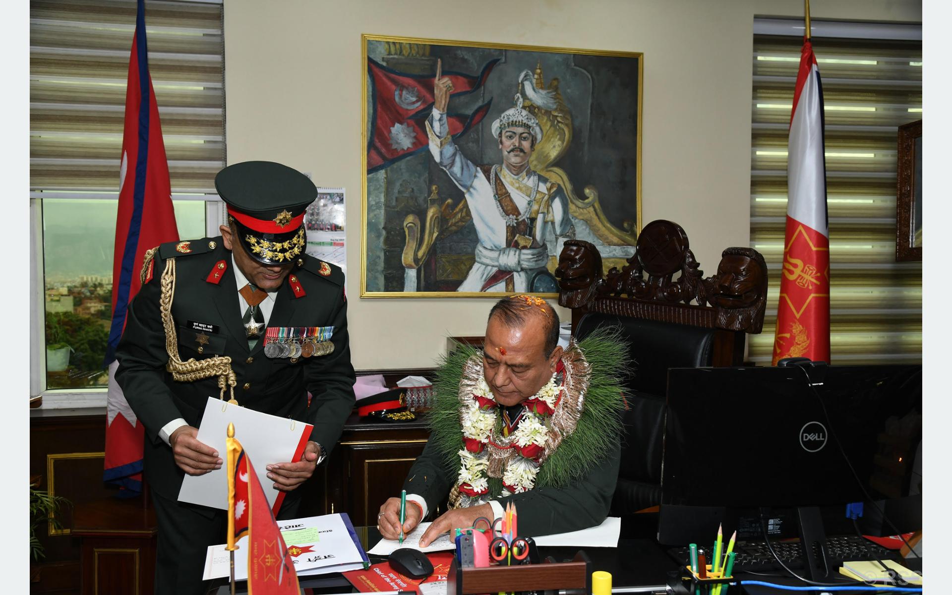 काठमाडौं । प्रधान सेनापति अशोकराज सिग्देलले सैनिक मुख्यालय जङ्गी अड्डामा पदबहाली गरेका छन् ।