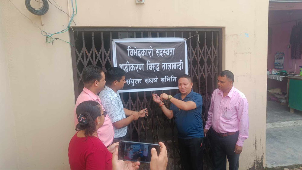 नेपालगन्ज । असोज १२ गतेका लागि सार्वजनिक गरिएको पत्रकार महासंघको निर्वाचन प्रयोजनको लागि प्रकाशित मतदाता नामावलीमा विभेद गरिएको भन्दै पत्रकार महासंघ बाँके शाखाको कार्यालयमा तालाबन्दी गरिएको छ ।