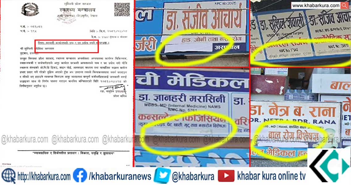 लुम्बिनी प्रदश स्वास्थ्य मन्त्रालयले सरकारी अस्पतालको नाम र पद प्रयोग गरी नीजि स्वास्थ्य संस्थाको ओ।पि।डि टिकट, साइन बोर्ड, आमसञ्चार माध्यम तथा सामाजिक सन्जाल मार्फत प्रचार प्रसार नगर्न निर्देशन जारी गरेपछि मेटाउने अभियान सुरु भएको हो ।