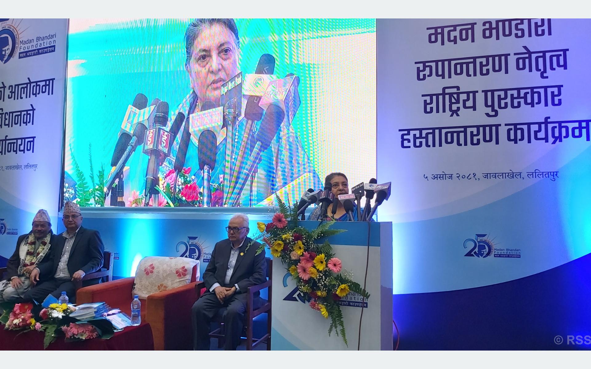 ललितपुर । पूर्वराष्ट्रपति विद्यादेवी भण्डारीले जनताको बहुदलीय जनवाद (जबज) ले आत्मनिर्भर र मजबुत अर्थतन्त्र बनाउनुपर्नेमा जोड दिएको बताएकी छन् ।