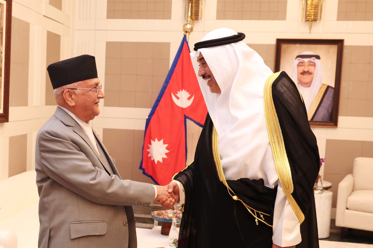 प्रधानमन्त्री ओली र कुवेतका राजकुमार एवं प्रधानमन्त्री सबाहबीच भेटवार्ता