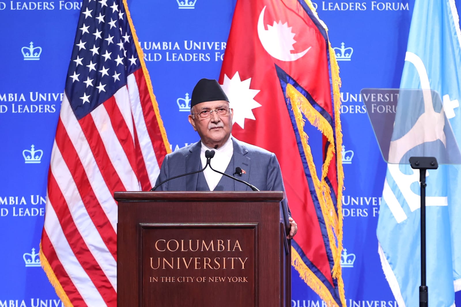 न्युयोर्क । प्रधानमन्त्री केपी शर्मा ओलीले विदेशमा रहेका नेपाली युवालाई रोजगारी विकासका लागि स्वदेशमा फर्केर अवसर सृजना गर्न आग्रह गरेका छन । संयुक्त राष्ट्रसङ्घको ७९ औँ महासभामा भाग लिन नेपाली प्रतिनिधिमण्डलको नेतृत्व गर्दै संयुक्त राज्य अमेरिकाको न्युयोर्कमा रहेका प्रधानमन्त्री ओलीले सोमबार कोलम्बिया विश्वविद्यालयद्वारा आयोजित वल्ड लिडर्स फोरममा गरिबी निवारण गरी सबैलाई सम्मानजनक रूपमा बाँच्न पाउने अधिकार दिलाउन समृद्ध नेपाल सुखी नेपालीको राष्ट्रिय आकाङ्क्षा अघि सारिएको स्पष्ट पारे ।