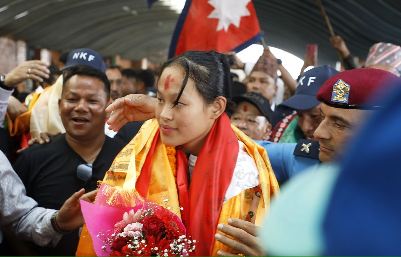 कराँतेमा ऐतिहासिक पदक विजेता एरिका स्वदेश फिर्ता, विमानस्थलमा भव्य स्वागत