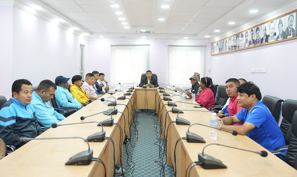 काठमाडौं । राष्ट्रिय खेलकुद परिषद् (राखेप) का सदस्य-सचिव टंकलाल घिसिङले विभिन्न खेलका मुख्य प्रशिक्षकसँग प्रशिक्षण, भावी योजना, समस्या लगायतका विषयमा चासो राख्दै छलफल गरेका छन् ।