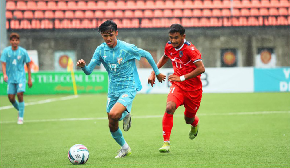 शनिबार भुटानको थिम्पुस्थित चाङलिमिथाङ स्टेडियममा सम्पन्न सेमिफाइनल खेलमा भारतले नेपाललाई ४-२ गोल अन्तरले पराजित गरेको हो ।