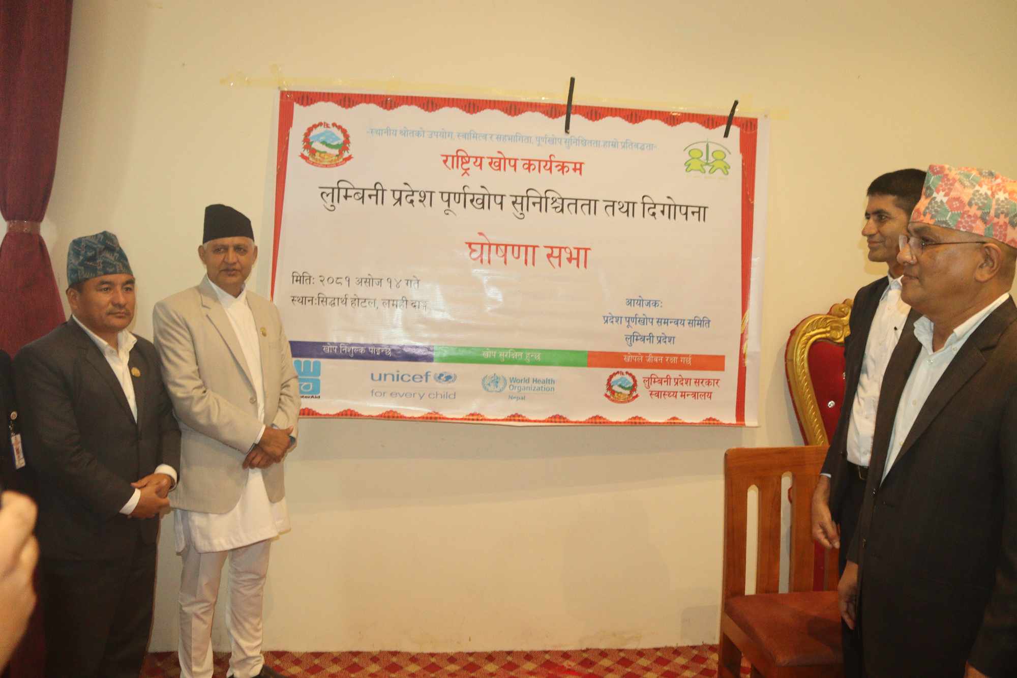 घोषणा कार्यक्रममा स्वास्थ्यमन्त्री खेम सारुलगायत स्थानीय तहका प्रमुख तथा उपप्रमुखको सहभागिता थियो ।