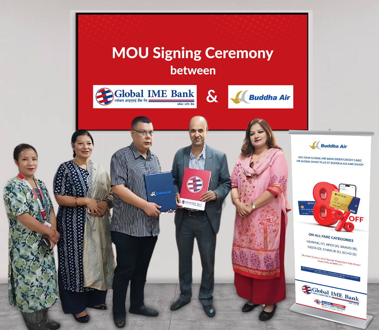 ग्लोबल आइएमई बैंकका ग्राहक तथा परिवारले बुद्ध एयरको टिकट खरिदमा ८ प्रतिशत छुट पाउने