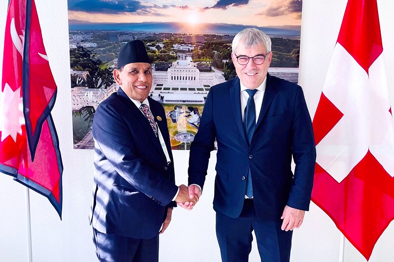 काठमाडौँ । राष्ट्रियसभाका अध्यक्ष नारायणप्रसाद दाहाल र स्विजरल्यान्डको नेसनल काउन्सिलका अध्यक्ष एरिक नसबाउमरबीच भेटवार्ता भएको छ ।