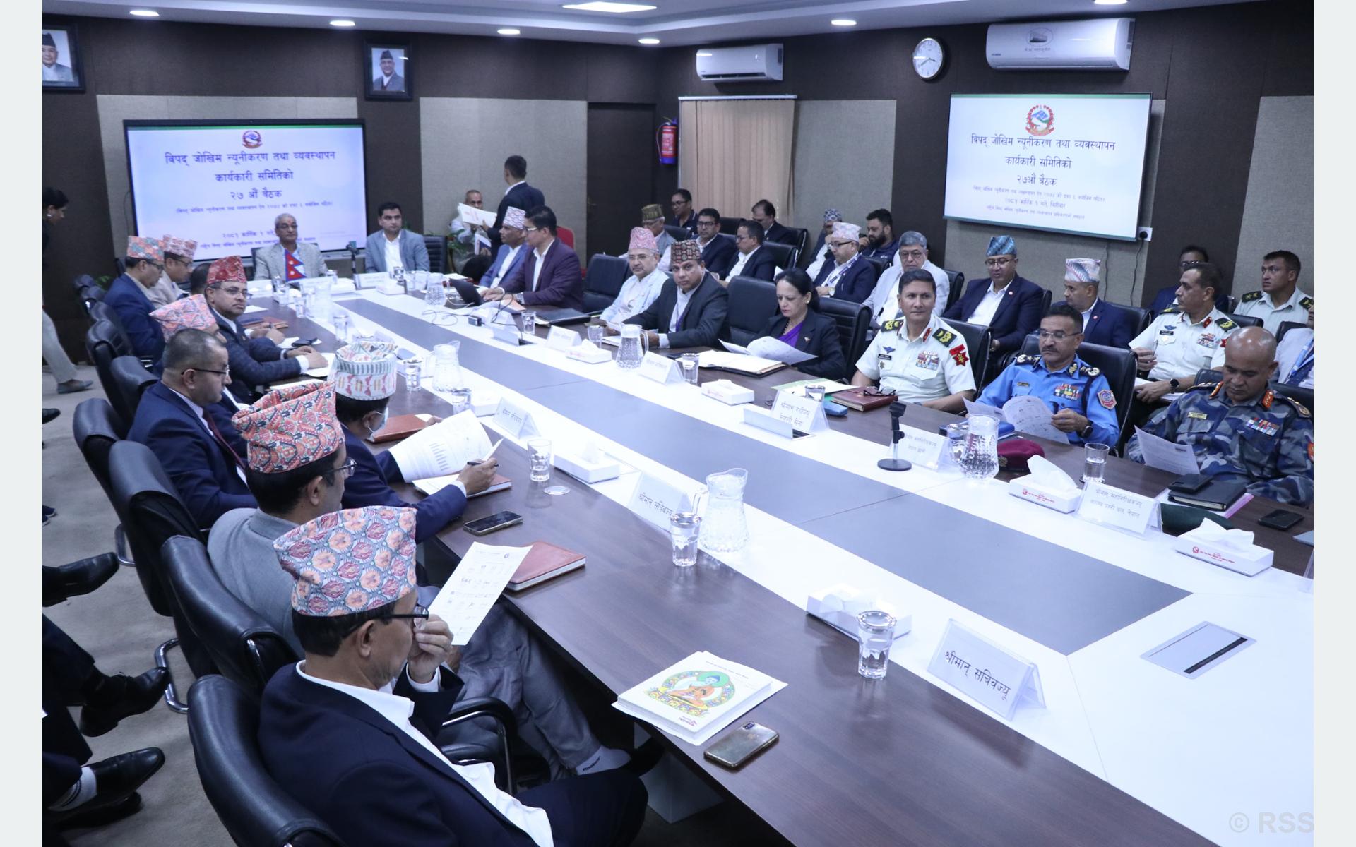 सिंहदरबारस्थित विपद् प्राधिकरणको कार्यालयमा आज गृहमन्त्री रमेश लेखकको अध्यक्षतामा बसेको राष्ट्रिय विपद् व्यवस्थापन कार्यकारी समितिको २७औँ बैठकले विपद्बाट प्रभावित मुलुकका ७१ स्थानीय तहलाई राहत रकम दिने निर्णय गरेको छ । प्रभावित स्थानीय तहलाई तीन भागका वर्गीकरण गरी राहत रकमस्वरुप प्रत्येक स्थानीय तहलाई रु ५० लाखदेखि रु एक करोडसम्म उपलब्ध गराउने निर्णय गरिएको प्राधिकरणका सहसचिव वसन्त अधिकारीले जानकारी दिए । त्यसका साथै जिल्ला विपद् व्यवस्थापन समितिमार्फत तत्काल राहतस्वरुप प्रभावित पालिकालाई रकम उपलब्ध गराउन विपद् जोखिम न्यूनीकरण तथा व्यवस्थापन राष्ट्रिय परिषद्मा सिफारिस गर्ने समेत निर्णय गरिएको उनले बताए ।