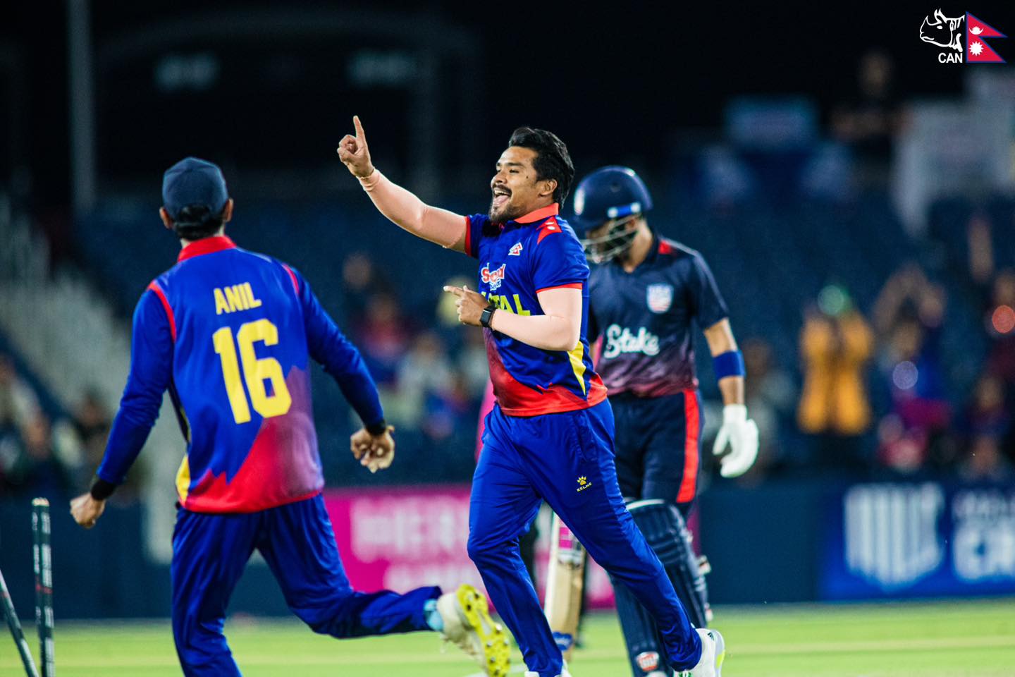 यता अमेरिकाका लागि नोस्तुज केन्जी र जसदीप सिंहले दुईरदुई विकेट लिँदा सौरभ नेत्रभालकरले एक विकेट लिए । खराब सुरुवात गरेको नेपालले तेस्रो नम्बरमा कुशल भुर्तेल क्रिजमा आएपछि आक्रामक अग्रता लिएको थियो ।