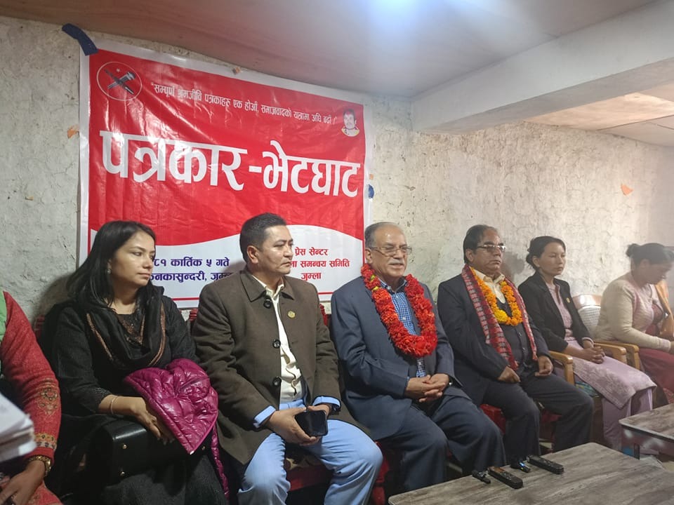 प्रेस सेन्टर जुम्लाले आज जुम्लाको सिंजा कनकासुन्दरीमा गरेको पत्रकार भेटघाटलाई सम्बोधन गर्दै उनले आफूले सरकार गठन भएदेखि नै यो सरकार भ्रष्टाचारीलाई बचाउन बनेको हो भन्दै आएको र अहिले त्यो आरोप प्रधानमन्त्री स्वयंले पुष्टि गरेको बताए ।